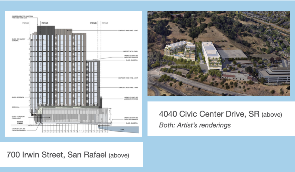 The biggest housing bill of the year, AB 130 (CEQA exemptions for infill housing) is already speeding up housing approvals. This legislation exempts many infill housing developments from environmental impact report requirements and streamlines approvals. For more on this legislation, see our September 2025 Perspective. The just-approved 700 Irwin Street project (known to NIMBYs as the behemoth skyscraper (?!) that will destroy San Rafael’s ‘quaint’ character) used AB 130 to speed its application, and the 4040 Civic Center development followed suit, gaining it a quick approval with the Planning Commission on January 27.  Just a thought – are our friends and neighbors opposing the Irwin Street project the same ones complaining about unhoused people resting in our parks and on our sidewalks?  Hmmm . . .